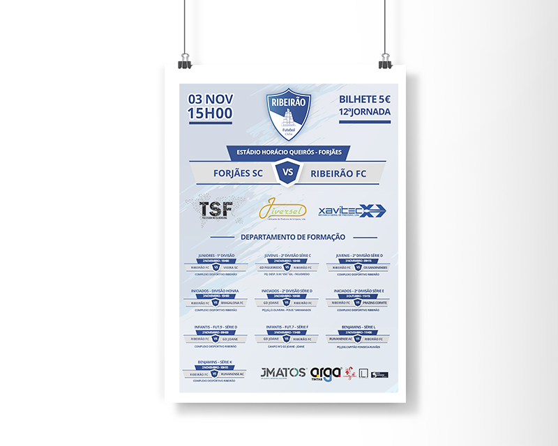 Design – Balneário Ribeirão FC, e peças de comunicação gráfica (placas, lonas, flyers).